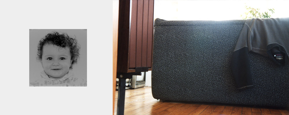 Les photographies de cette série ont été faites en plaçant l’appareil photographique sur l’œil droit de l’enfant, durant les premiers mois de sa vie, dans des situations quotidiennes : sur son matelas à langer, dans son landau, puis plus tard, dans sa poussette, dans son bain, dans sa chaise haute. Les photographies ont très souvent été prises à des moments où il semblait regarder fixement quelque chose ; j’ai imaginé quelquefois qu’il cherchait à faire l’effort de mémoriser ce qu’il regardait pour plus tard …